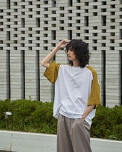 【#005】 Bicolor Design Sleeve T-shirt